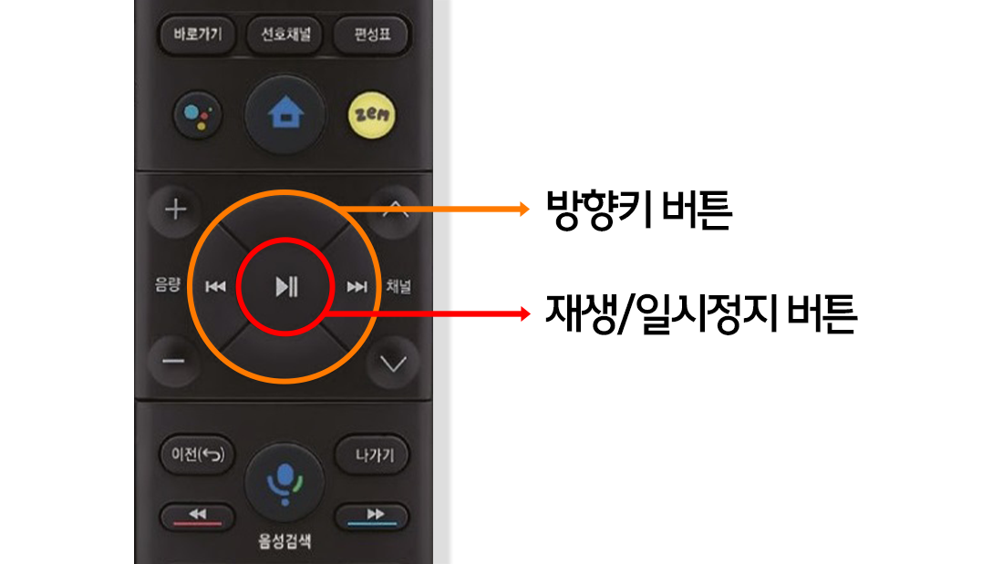 리모컨의 방향키 버튼과 재생/일시정지 버튼을 사용하여 계속/건너뛰기/동의/허용을 선택해 주세요.