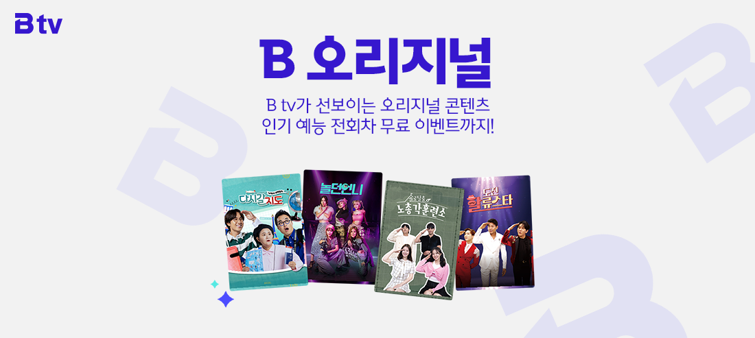 B tv와 모바일 B tv의 B 오리지널 메뉴에서 다양한 콘텐츠와 무료 이벤트 콘텐츠를 시청하세요!