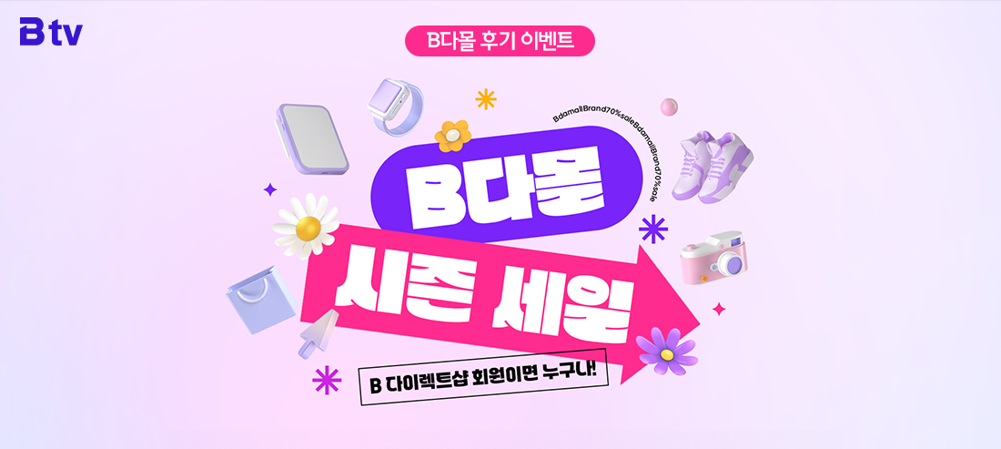 B다몰 시즌 세일에서는 인기 브랜드 제품을 최대 70% 할인된 가격에 구매할 수 있어요.