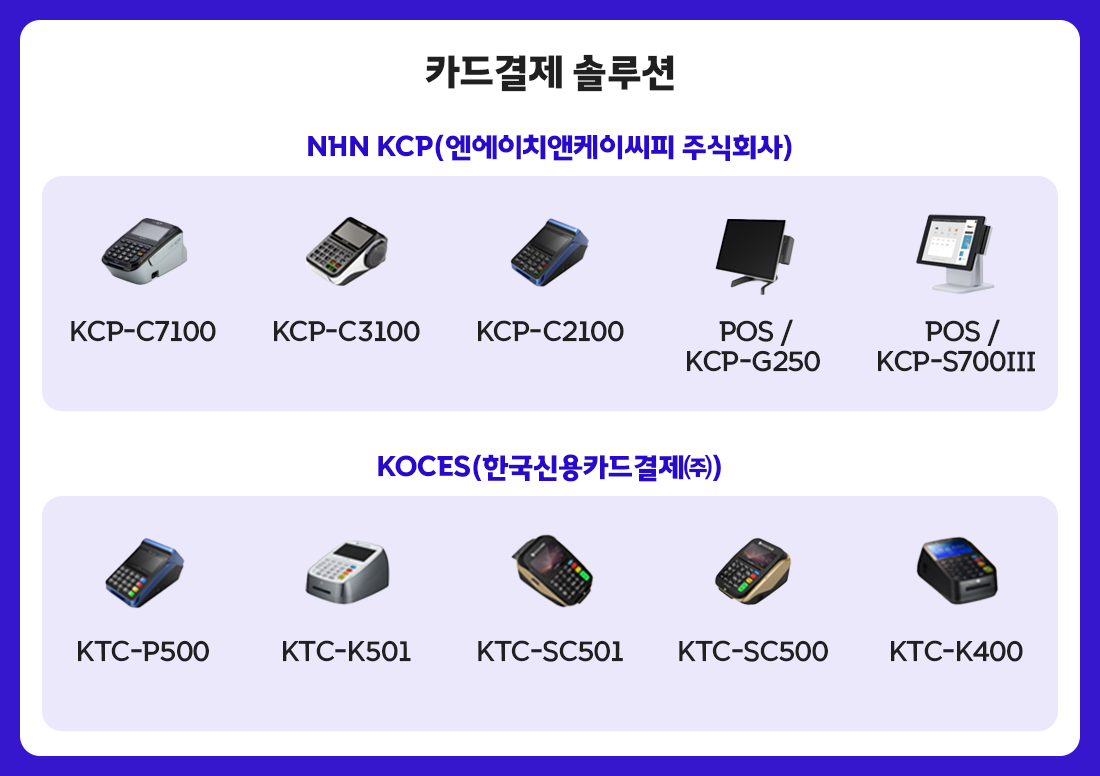 카드결제는 NHN KCP, KOCES와 제휴되어 있는데요.