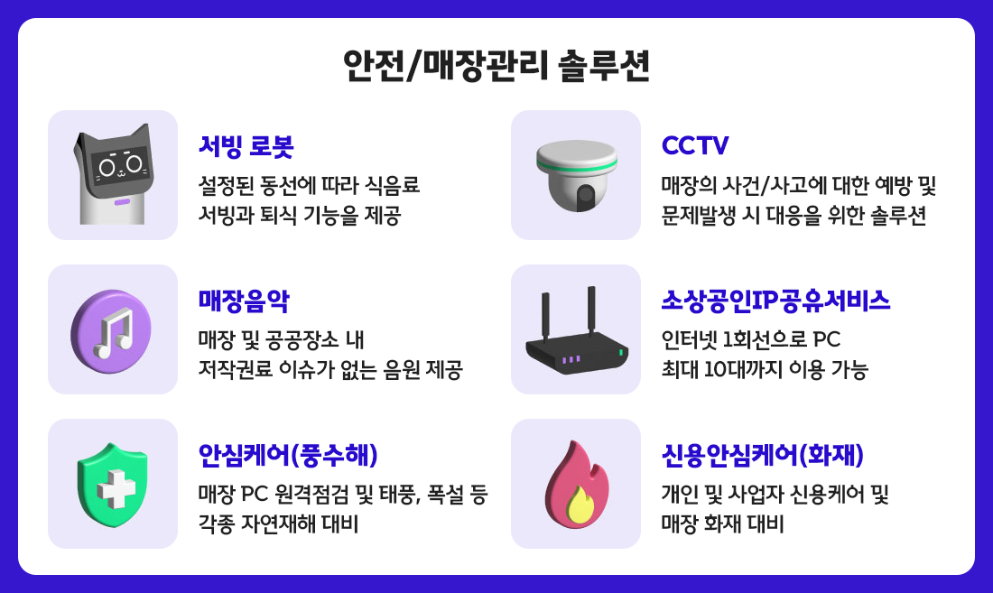 매장에 필요한 인터넷 상품에 가입하면서 원하는 서비스와 솔루션을 선택해서 가입할 수 있는데요.