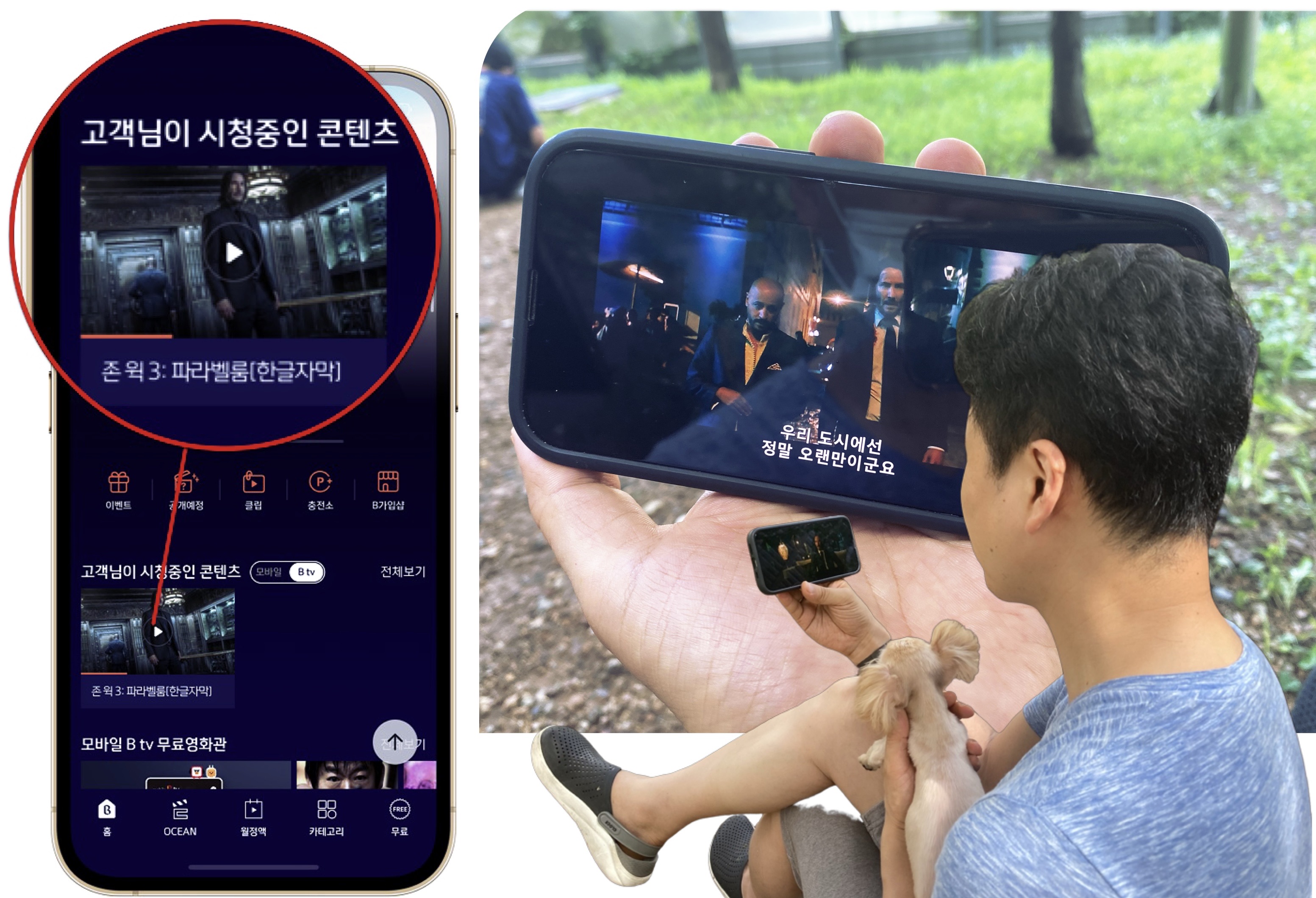왜냐하면 B tv에서 TV로 보던 영화를 스마트폰에서 ‘모바일 B tv’ 앱으로 바로 이어서 계속 볼 수 있거든요! (^__^)