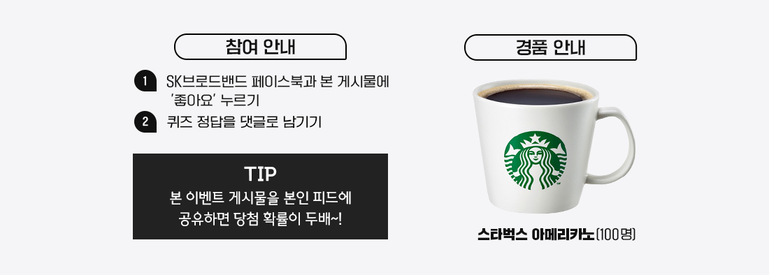 퀴즈 당첨자 분들 중 100분에게 추첨을 통해 스타벅스 아메리카노를 드립니다.