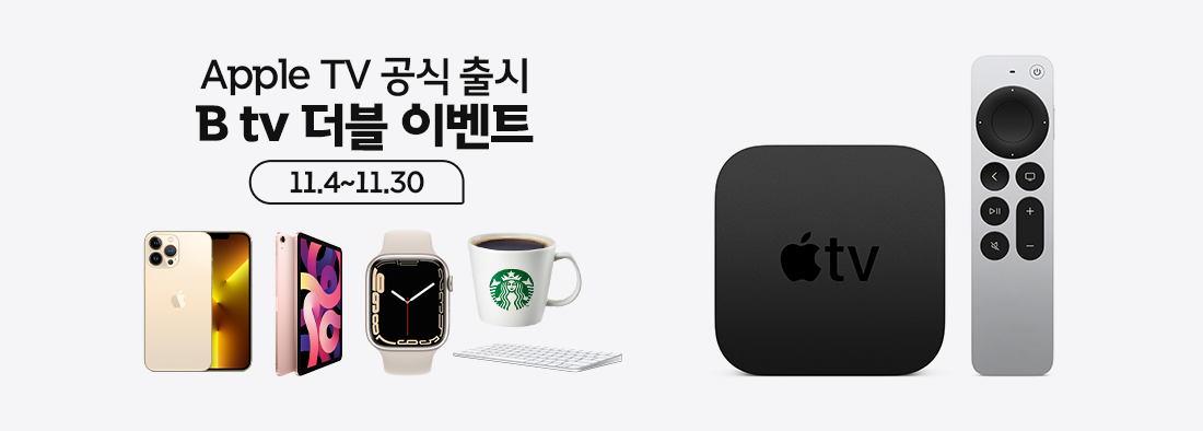11월 내에 B tv와 Apple TV 4K를 동시 신규 가입신청 완료하신 고객님들을 대상으로 B포인트 3만점을 드립니다.