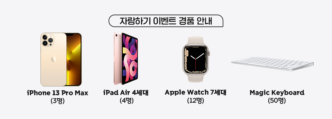 자랑하기 이벤트에는 iPhone 13 Pro Max 뿐만 아니라 어마어마한 선물도 같이 준비되어 있습니다.