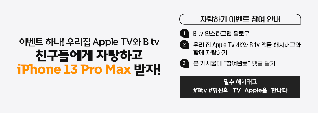 1. 우리집 Apple TV와 B tv! 친구들에게 자랑하고 iPhone 13 Pro Max 받을 수 있는 기회!