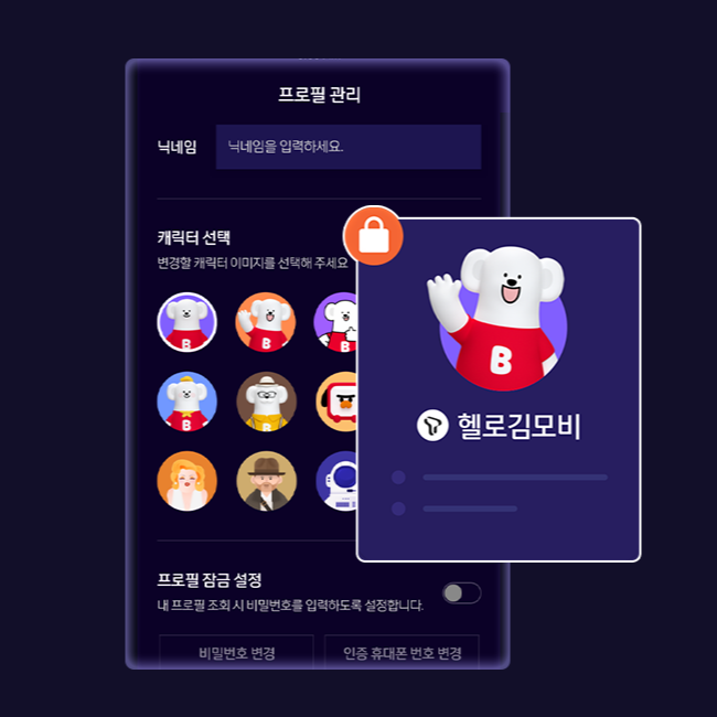 [MY]에서 나만의 개인 프로필을 만들면, 기기를 바꾸어도 언제든지 내 프로필로 모바일 B tv를 이용할 수 있어요.