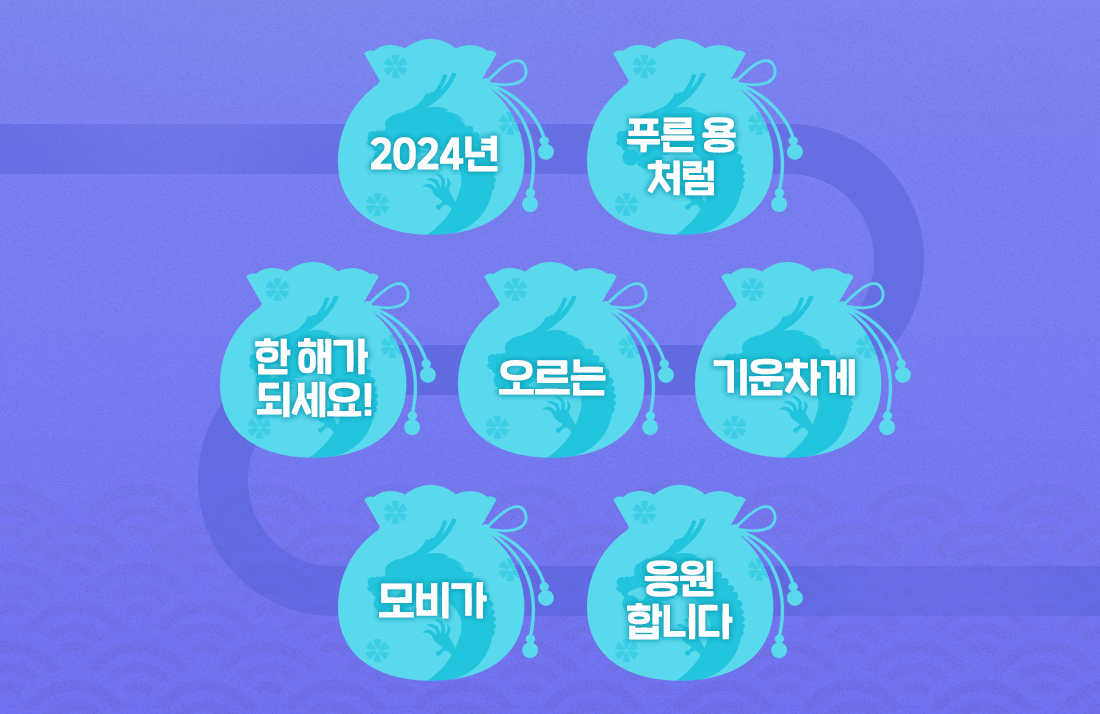 복주머니를 다 채우면 모비의 새해 덕담을 완성할 수 있습니다.