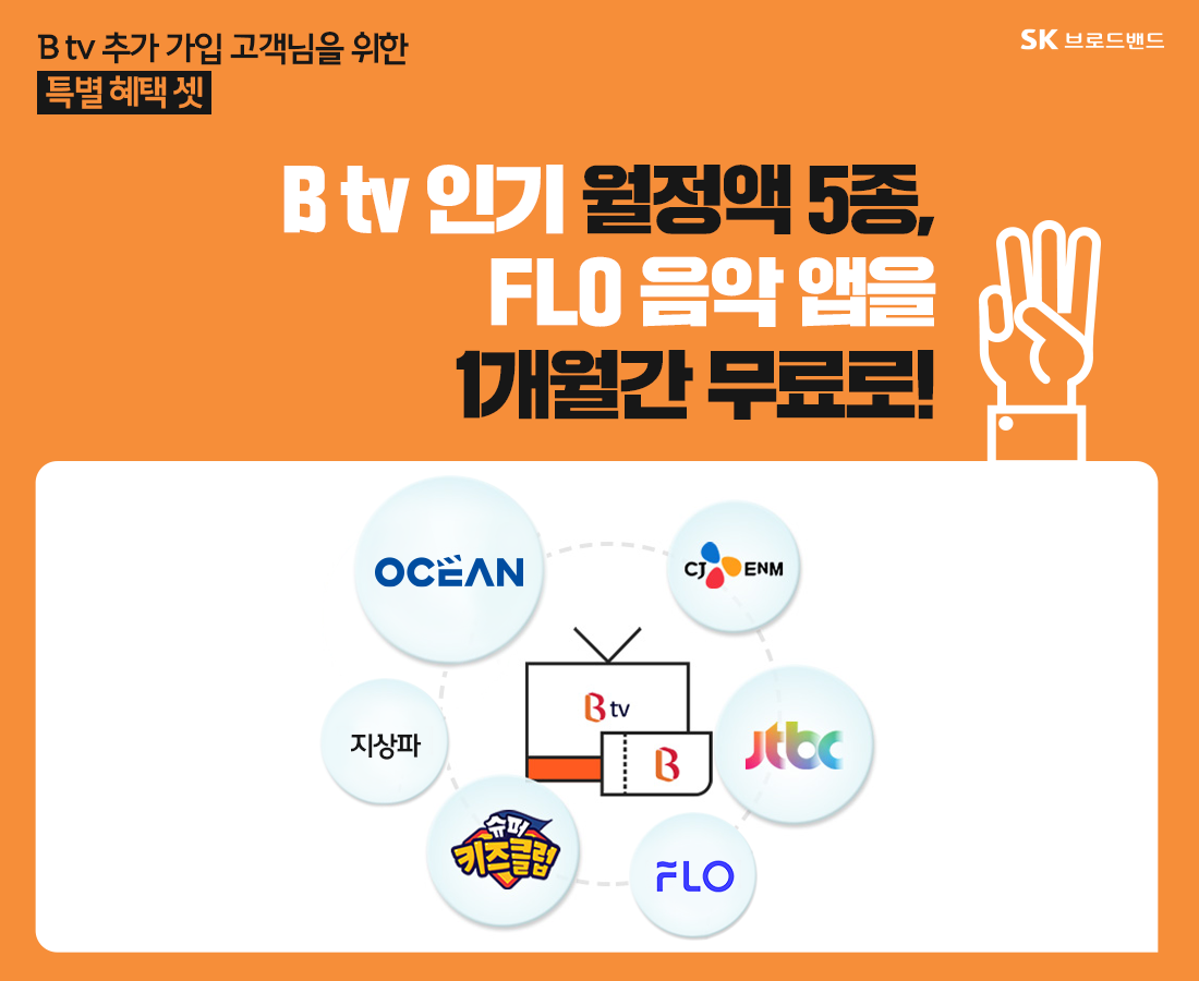 #B tv 추가 가입 고객분들에게 드리는 혜택 3. 인기 월정액 5종과 FLO 음악 앱을 1개월간 무료로!