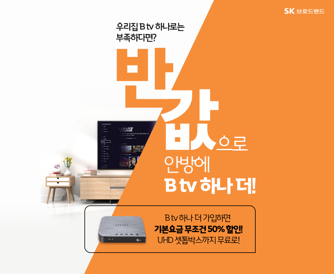반값으로 안방에 B tv 하나 더! 추가 가입 고객님에게 드리는 특별한 혜택 4가지!