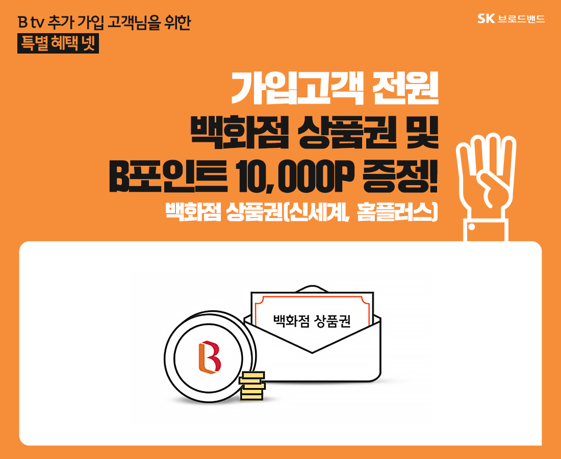 #B tv 추가 가입 고객분들에게 드리는 혜택 4. 백화점 상품권 및 B포인트 10,000P 증정!