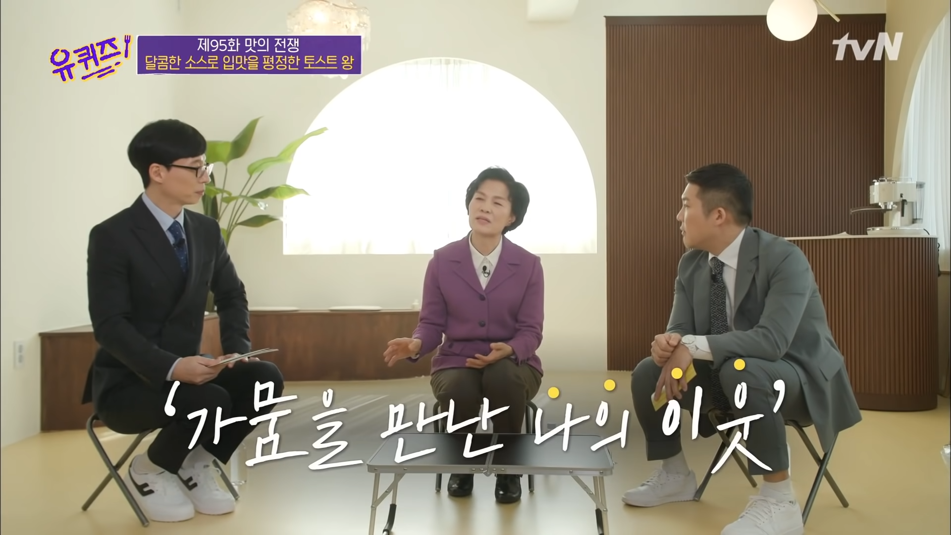 리모컨의 마이크 버튼 누르고 ▶ “유 퀴즈 온 더 블럭 95회 찾아줘~”