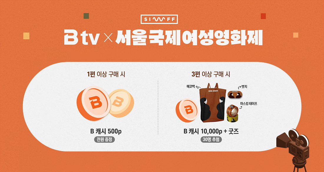 그리고 3편 이상의 상영작을 구매하신 분들께는 B 캐시 10,000p와 영화 굿즈까지 함께 드려요!
