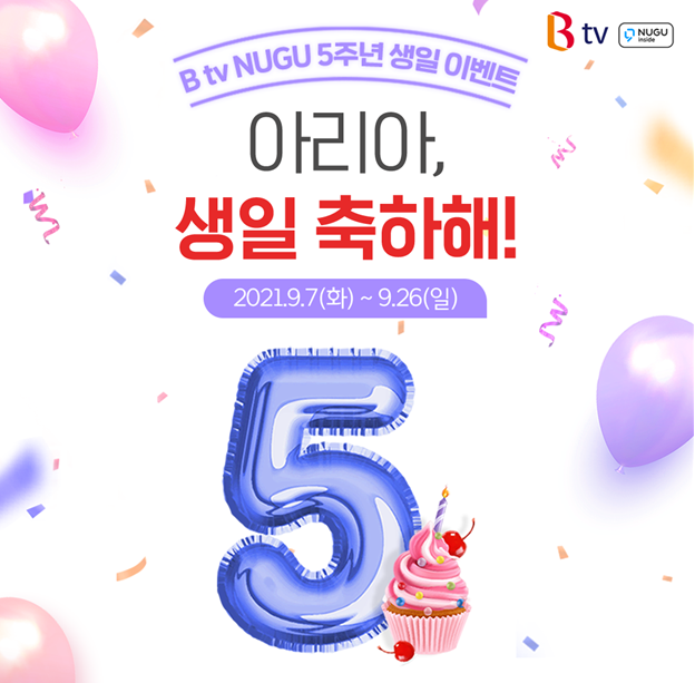 그리고 꼭 알려드리고 싶은 소식 하나! NUGU 5주년 이벤트가 현재 진행 중이다. 이벤트 기간인 9월 7일(화) ~ 9월 26일(일) 사이에 미션 메시지인 “아리아, 생일 축하해”를 NUGU에 대고 말한 후에 이벤트 페이지에 접속해 응모를 완료하면 된다. NUGU뿐 아니라 TMAP과 B tv, T전화 등 NUGU 기반 이용기기 전체가 이벤트 대상이다. B tv를 통해 참여할 경우 AI 셋톱박스를 향해 “아리아”를 외치거나, 리모컨의 마이크 버튼을 누른 뒤, “생일 축하해”라고 말해보자(단, B tv와 NUGU앱을 꼭 연동한 후 참여해야 한다).
