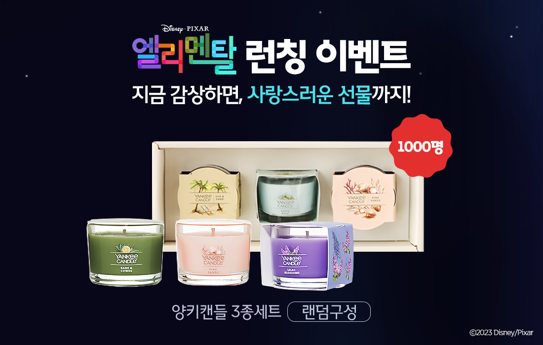 B tv에서 <엘리멘탈>을 시청하시고 양키캔들 3종 세트 선물 받아가세요!