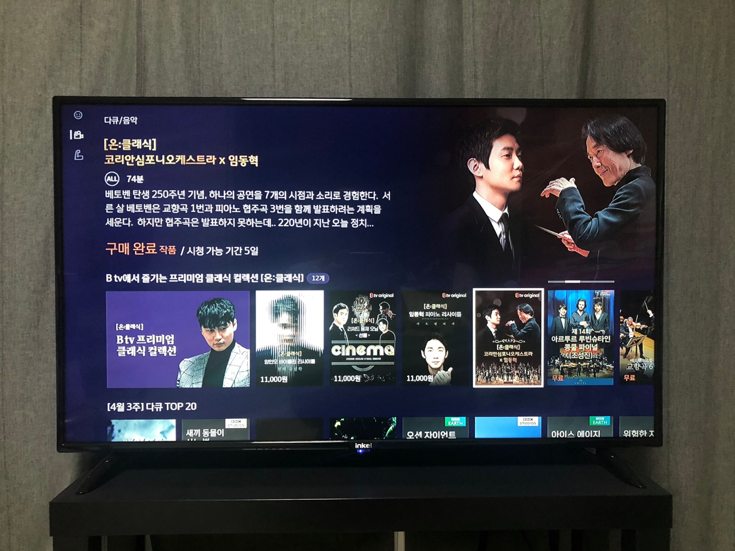 리모컨으로 이것저것을 살펴보는데 <온:클래식>이란 메뉴에 눈길이 멎었다. B tv와 wavve(웨이브)에서 단독으로 제공하는 콘텐츠였는데, 그중에서도 <코리안심포니오케스트라X임동혁> VOD가 눈에 확 띄었다. 피아니스트 임동혁의 팬이기도 하여 연주회 티케팅을 한다 생각하고 VOD 대여 결제를 했다. 이 VOD는 서울 잠실의 롯데콘서트홀에서 무관중으로 진행한 시크릿 공연을 영상으로 담은 것이었다.