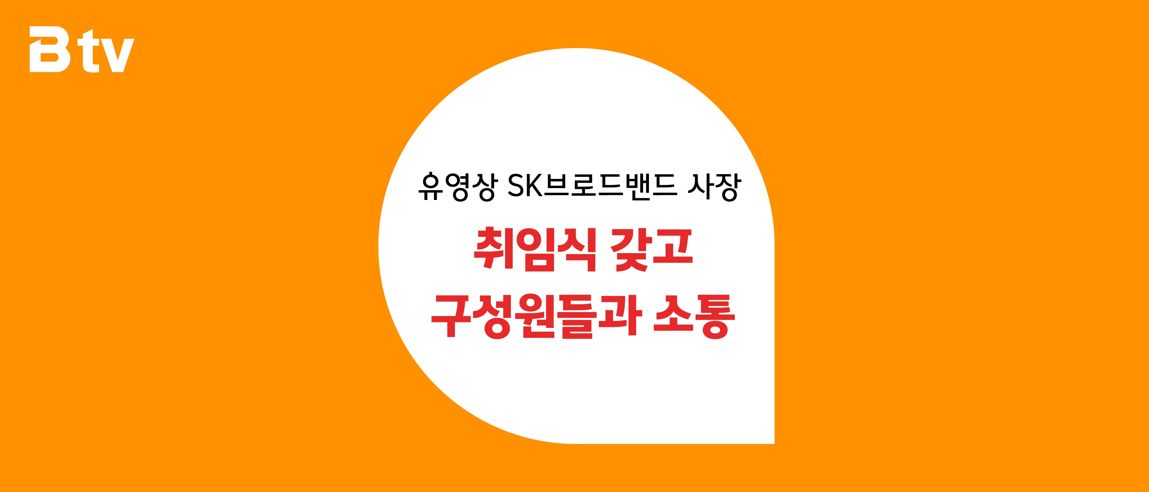 SK브로드밴드(사장 : 유영상, www.skbroadband.com)는 2일 오후 SK브로드밴드 본사에서 사장 취임식 및 구성원들과 타운홀 미팅을 갖고 “올해는 SK텔레콤과 SK브로드밴드(이하 T-B) 간 화학적 결합을 통해 ‘Virtually One Company’를 이루는 한 해로 만들자”고 밝혔다.