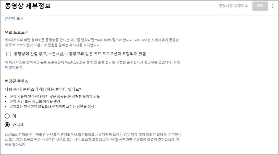 공개하지 않을 경우 영상 삭제 및 수익 창출 등의 불이익을 당할 수 있어요.