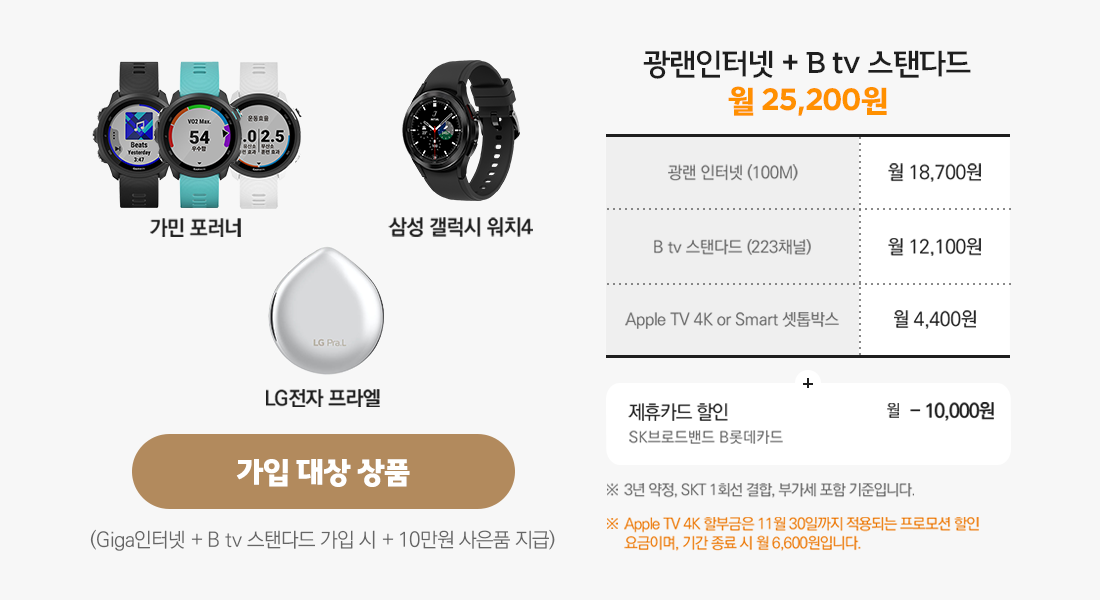 SK브로드밴드 B롯데카드 할인과 Apple TV 4K 프로모션은 동일하게 적용됩니다.