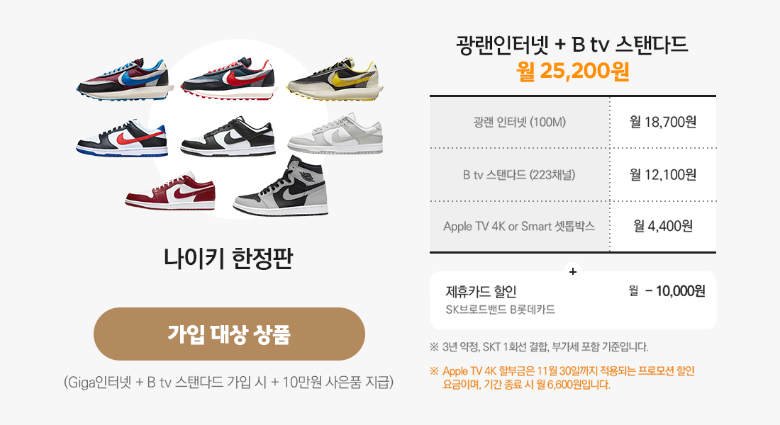 SK브로드밴드 인터넷과 B tv 가입하시고 역대급 사은품을 받아 가세요.