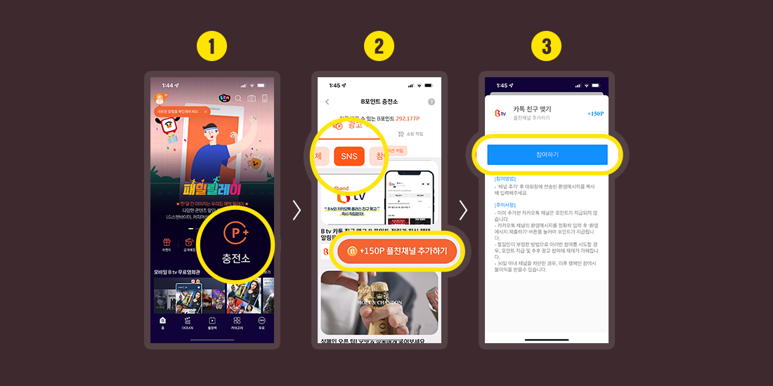 B포인트 충전소에서 B tv 카카오톡 채널을 친구 추가하시고 B포인트를 받아가세요.