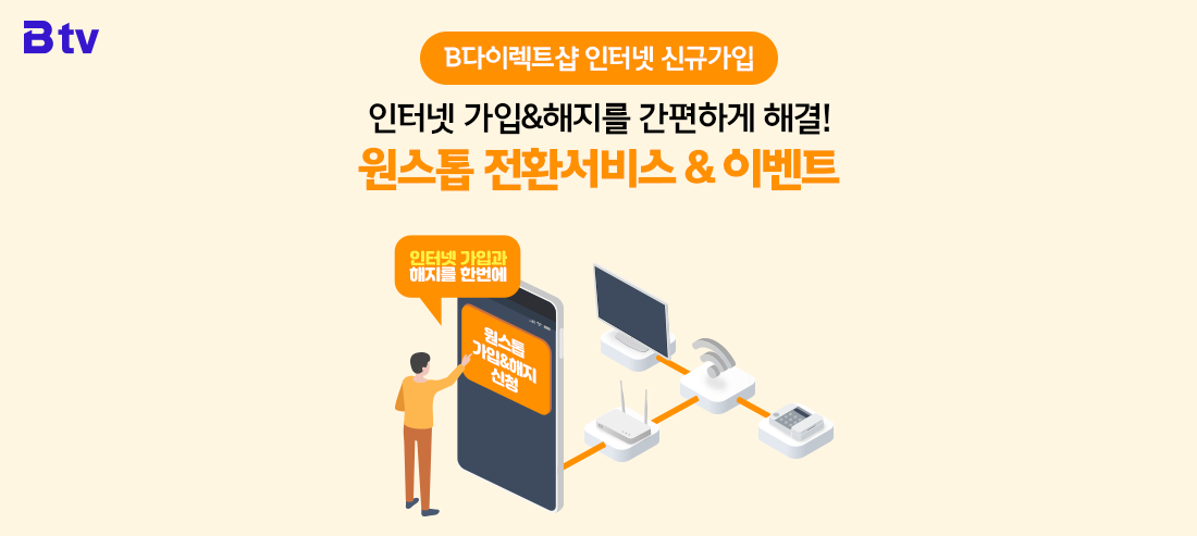 (B다이렉트샵/B tv 케이블샵에서 원스톱 전환서비스를 이용하여 기존(타사) 서비스 해지 후, 인터넷 신규 개통까지 완료하신 고객)
