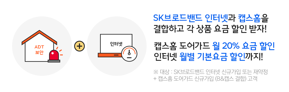 SK브로드밴드 인터넷과 캡스홈 도어가드를 결합하여 상품 요금을 할인 받으실 수도 있습니다.