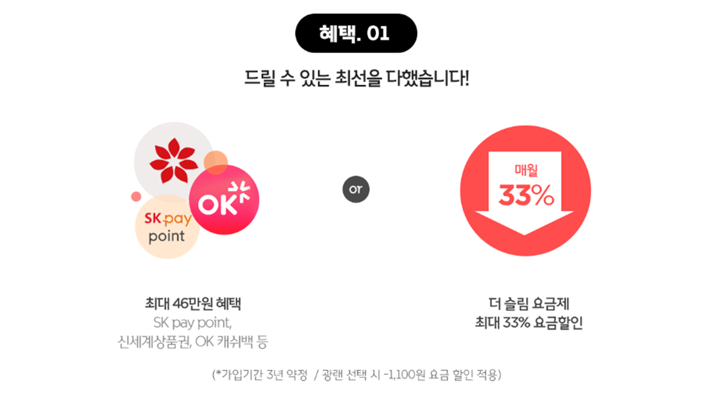 (가입기간 3년약정 / 광랜 선택 시 -1,100원 요금 할인 적용)