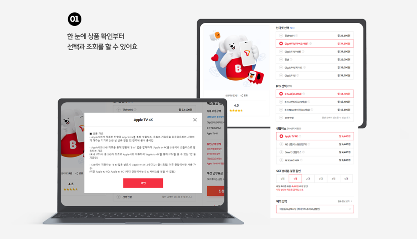 또한 SK 인터넷과 B tv 신규가입고객님을 위해 2개월간 B tv 요금이 5,000원 할인되는데요.