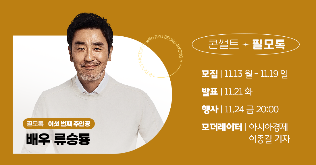11월 24일 금요일 저녁 8시, 류승룡 배우와 함께하는 필모톡에 여러분을 초대합니다!