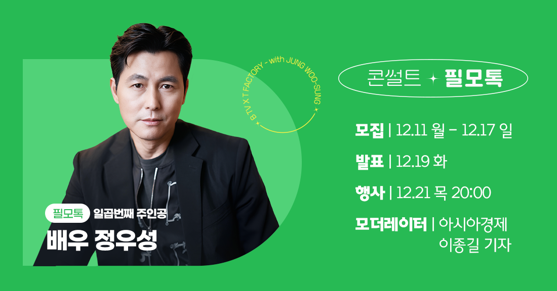 12월 21일 목요일 저녁 8시, 정우성 배우와 함께하는 필모톡에 여러분을 초대합니다!