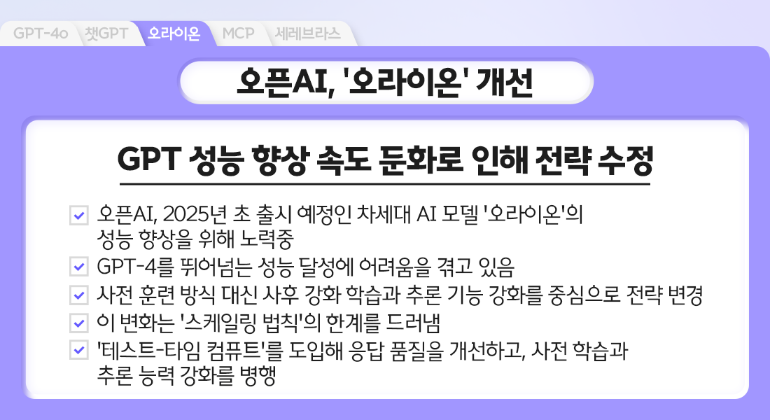 오픈AI는 '테스트-타임 컴퓨트'를 도입해 응답 품질을 개선하고, 사전 학습과 추론 능력 강화를 병행하고 있다.