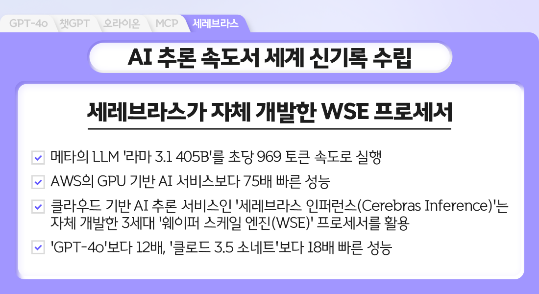 세레브라스, AI 추론 속도서 세계 신기록 수립..."GPU보다 75배 빨라"