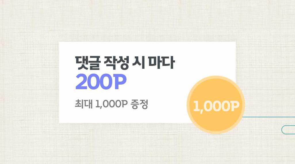 댓글을 작성하시는 모든 고객님께 댓글 하나당 B포인트 200P를, 최대 1,000P까지 드려요.