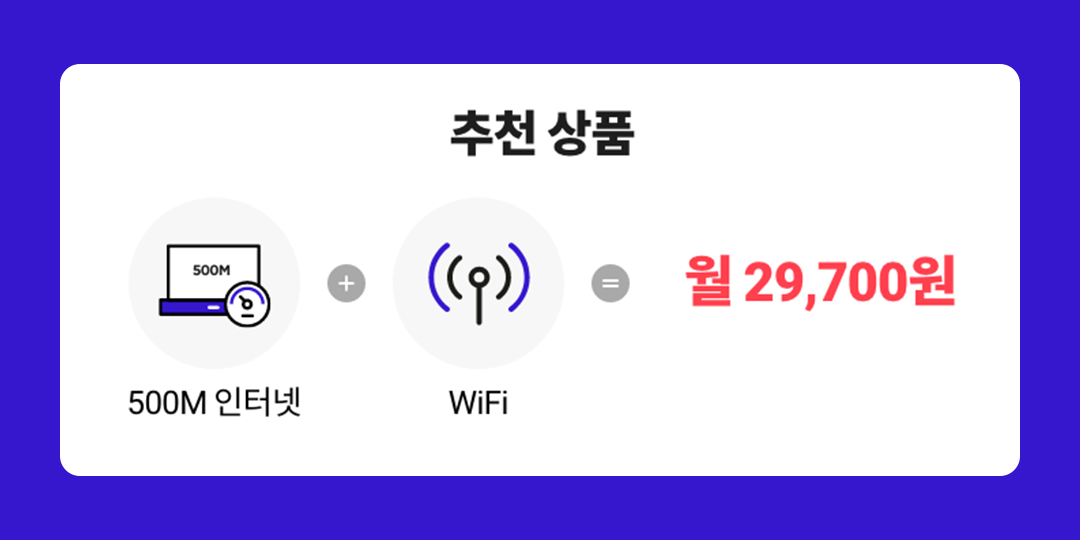 3년 약정 요금 수준인 월 29,700원에 500M 인터넷(기가라이트인터넷)과 WiFi(기가와이파이)를 사용할 수 있습니다.