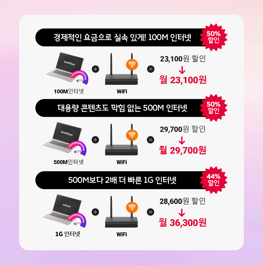 🔸 경제적인 요금으로 실속 있게! 100M 인터넷 + 와이파이 (50% 할인)