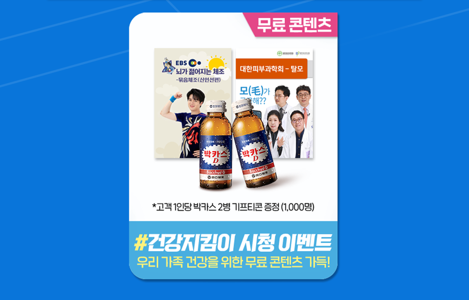 우리 가족 건강을 위한 #해피시니어 건강지킴이 최다 시청 고객님 1,000분께는 박카스 2병 기프티콘을 증정한다고 합니다.