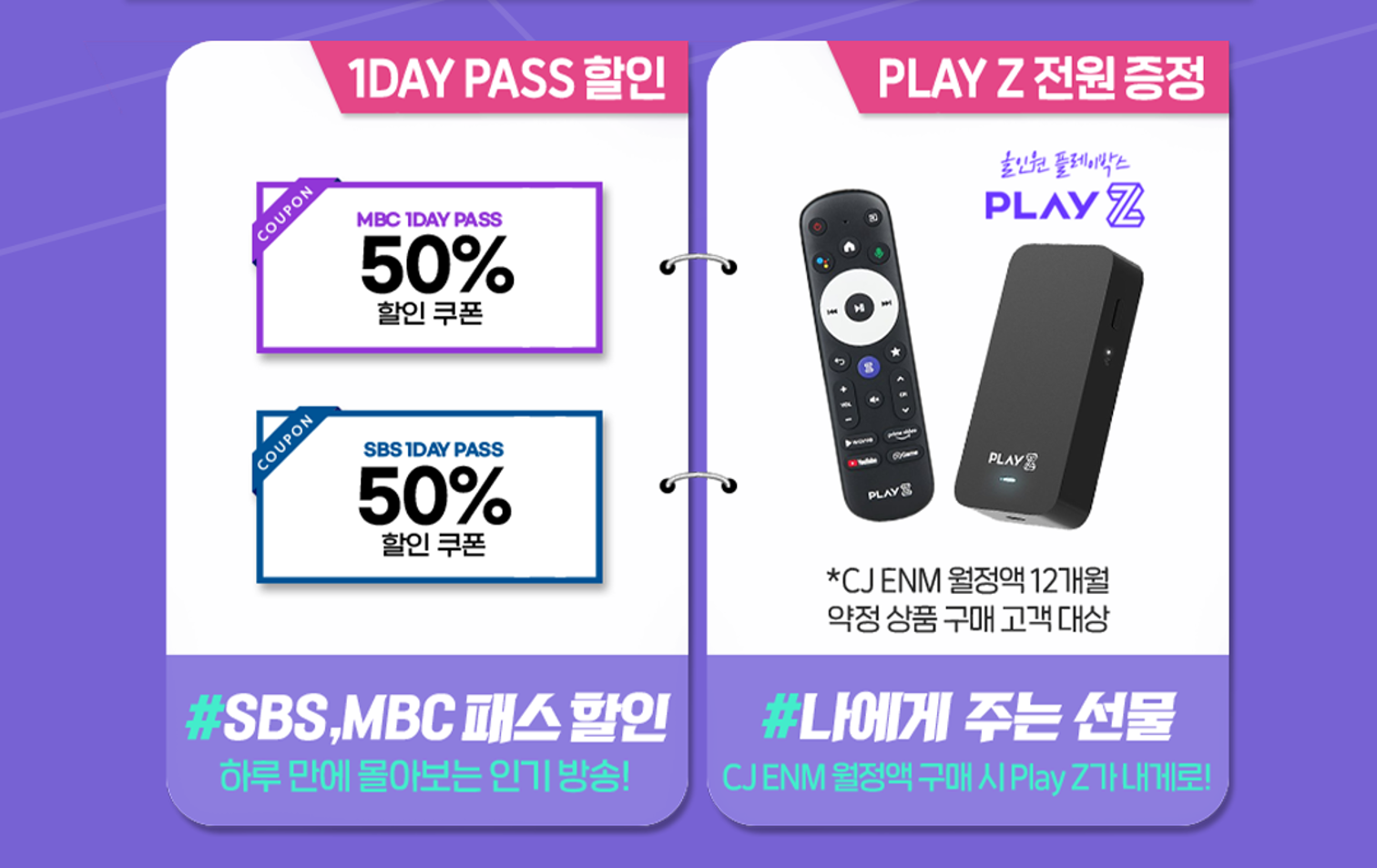 CJ ENM 월정액 12개월 약정 구매 고객님께는 #올인원 플레이박스 Play Z를 🔸전원 증정🔸한다고 합니다.