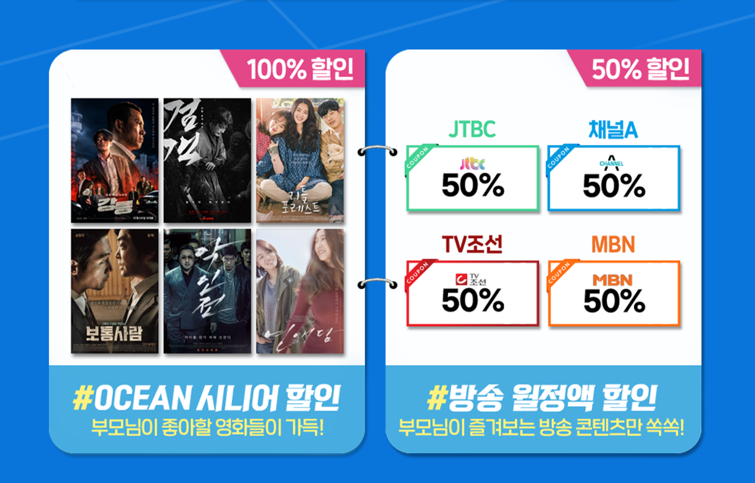 #OCEAN 시니어 월정액 1개월 100% 할인이 준비되어 있다고 해요.