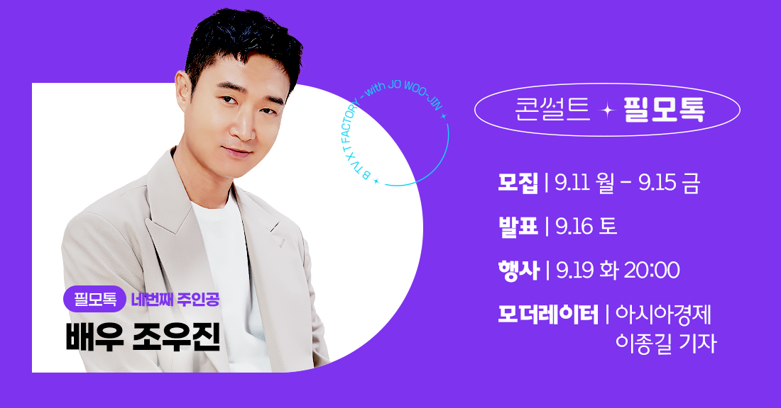9월 19일 화요일 저녁 8시, 조우진 배우와 함께하는 필모톡에 여러분을 초대합니다!