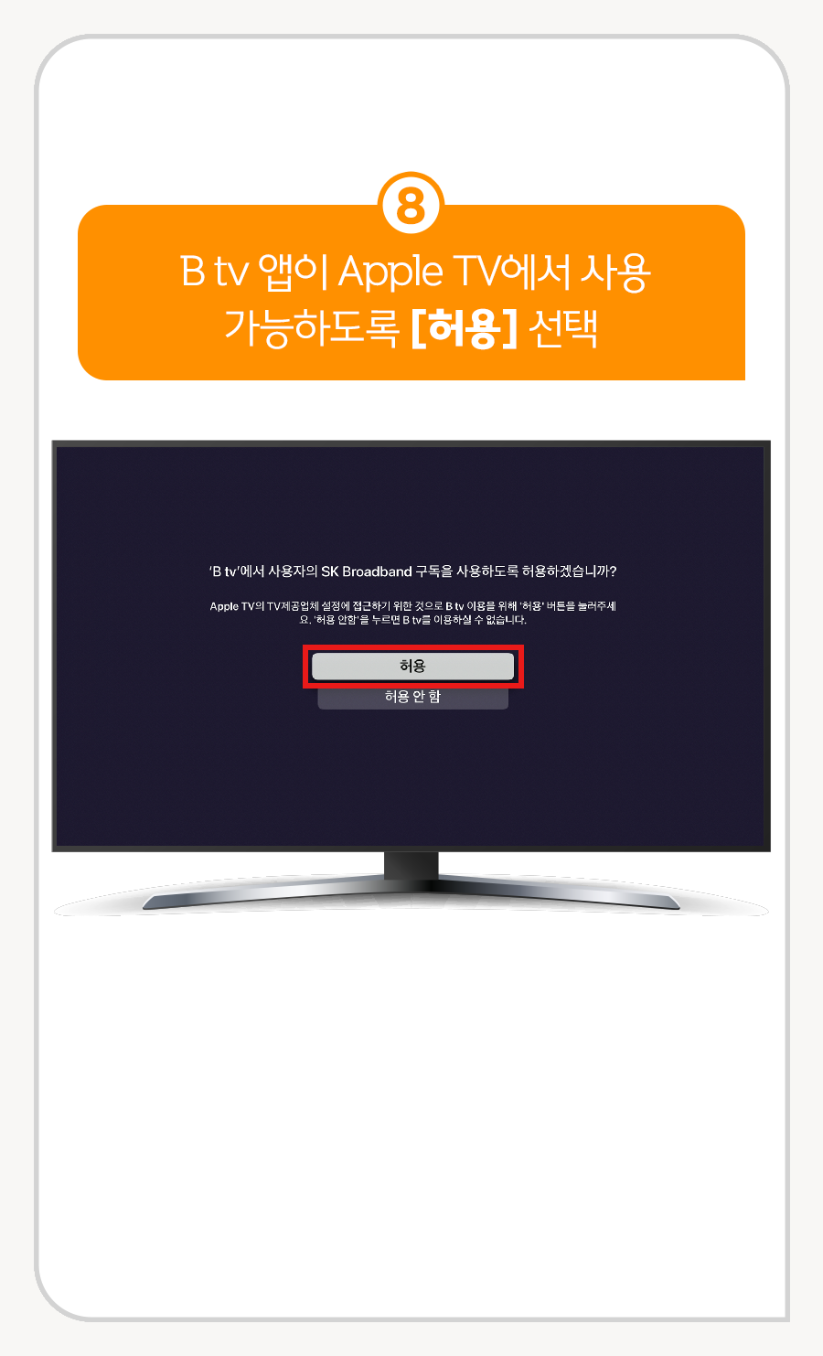 ⑧ B tv 앱이 Apple TV에서 사용 가능하도록 [허용] 선택