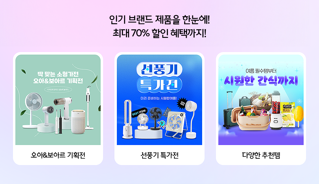 소형가전부터 여름에 꼭 필요한 선풍기, 시원한 간식까지 다양한 상품을 준비했어요.