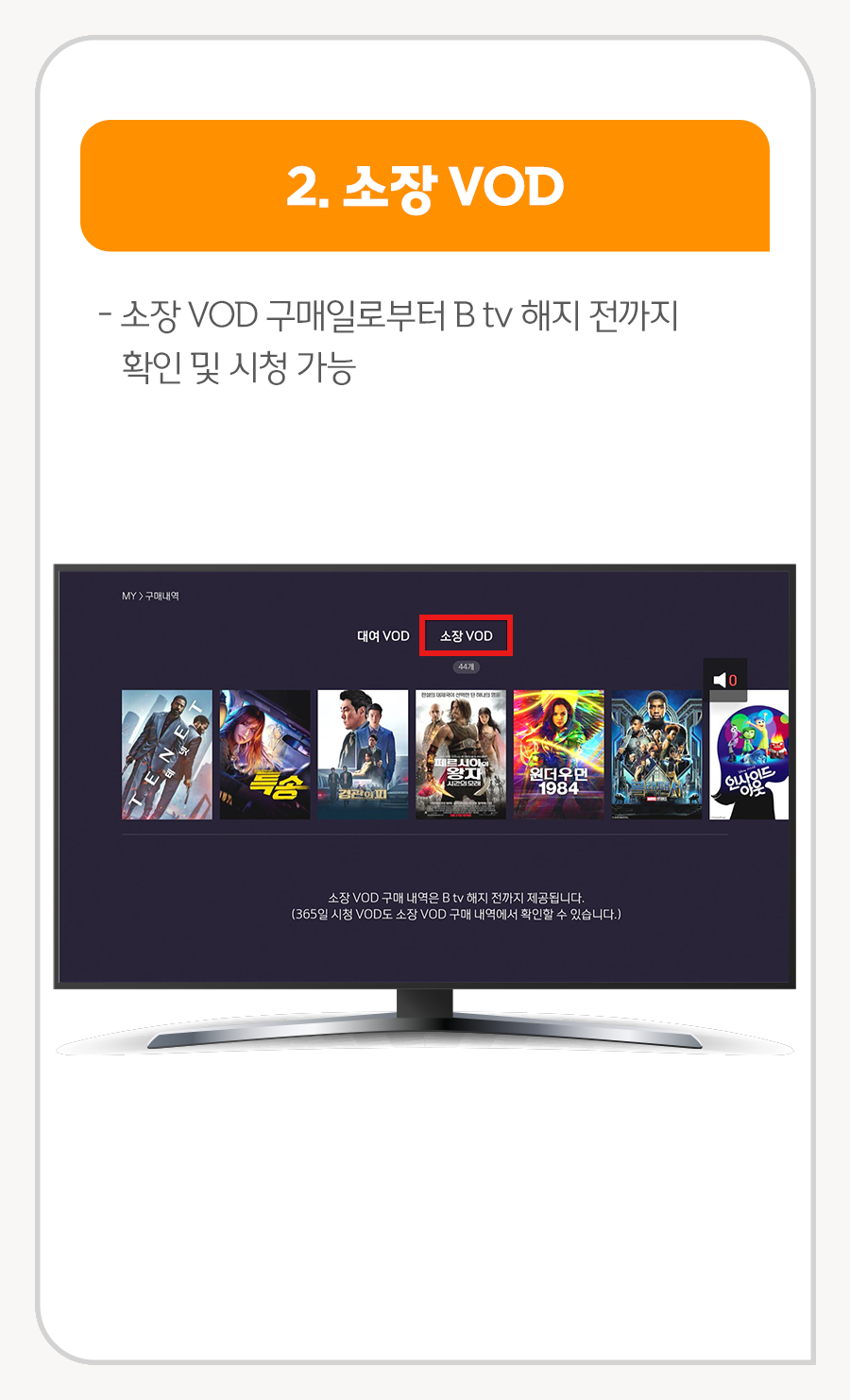 - 소장 VOD 구매일로부터 B tv 해지 전까지