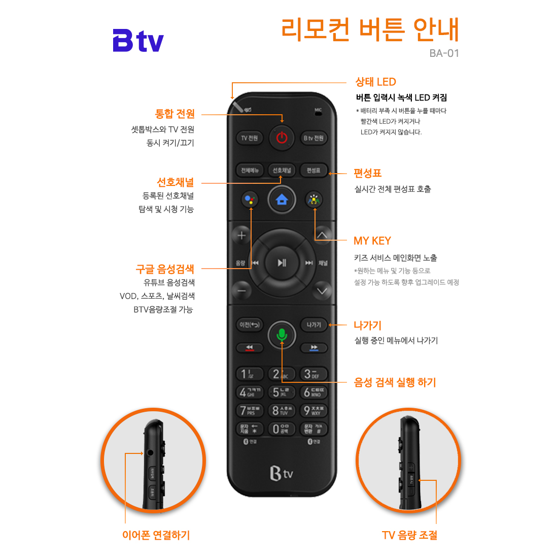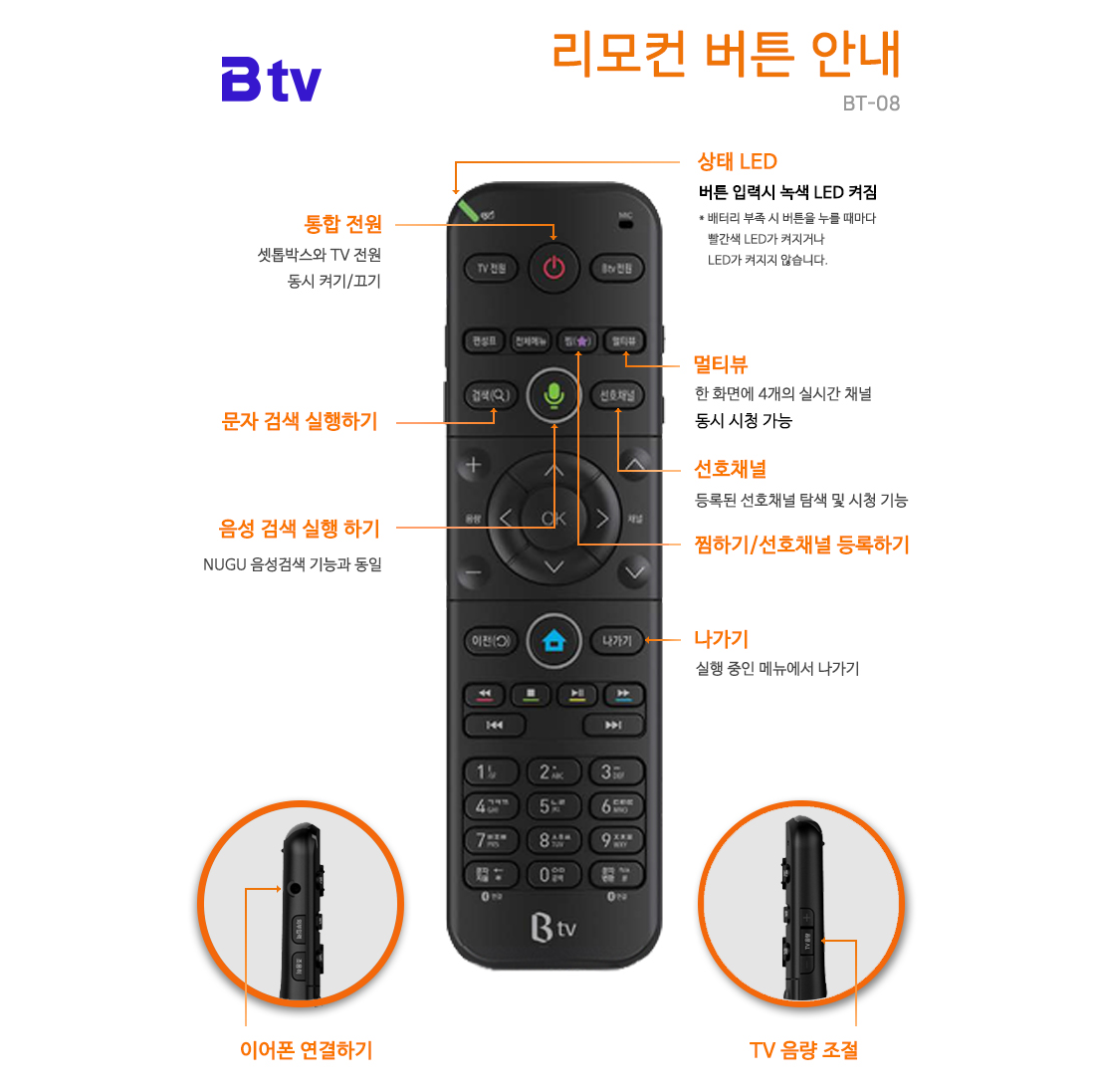 B tv 리모컨별 버튼 주요기능 안내