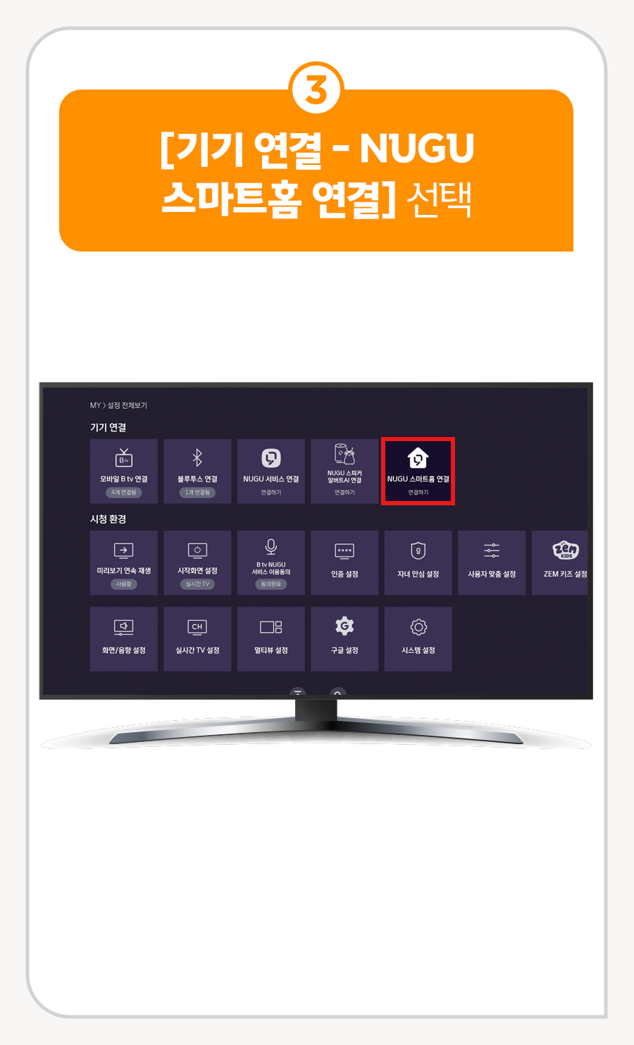 ③ [기기 연결] ▶ [NUGU 스마트홈 연결] 선택