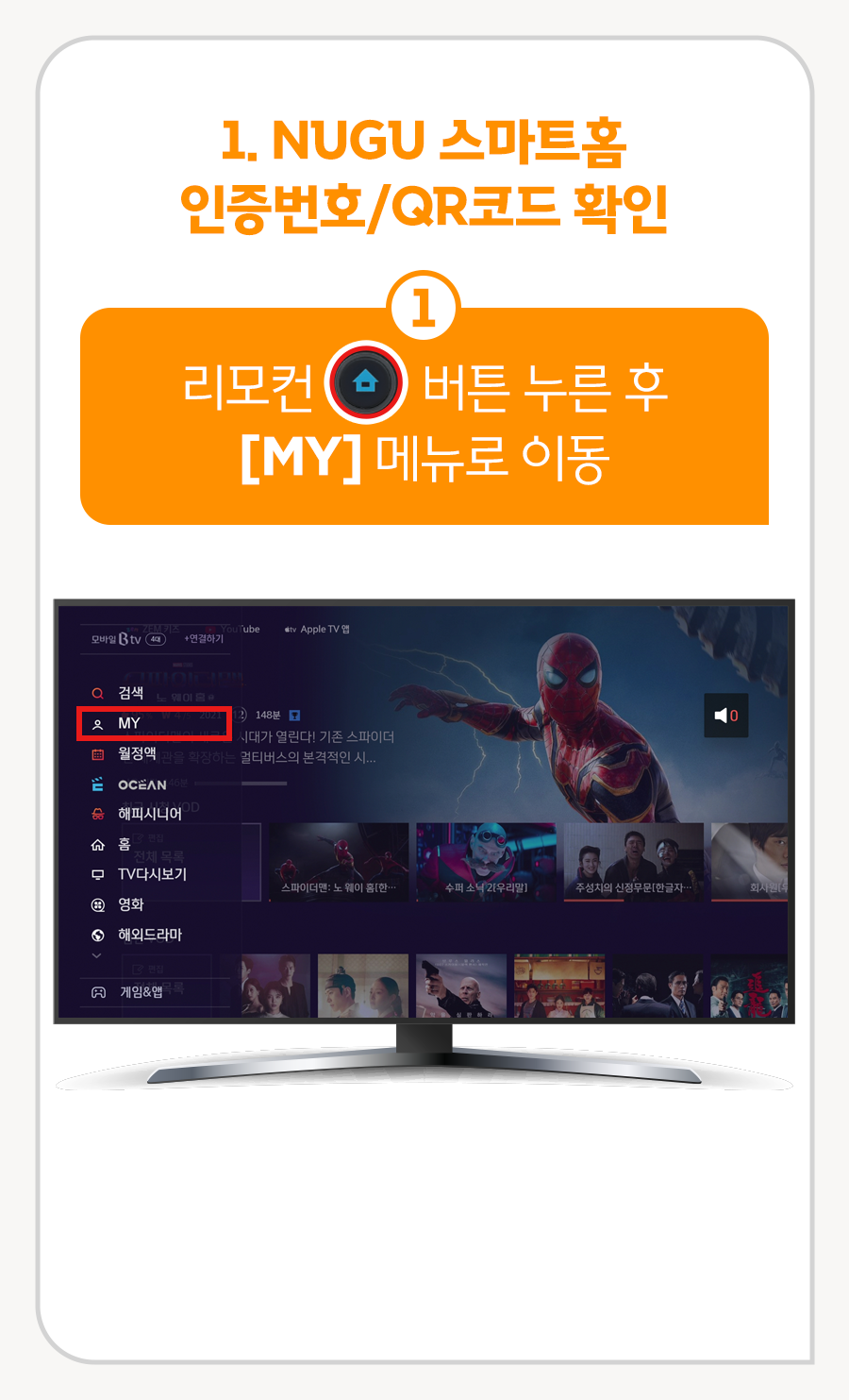 ① 리모컨 홈 버튼 선택 후 [MY]로 이동