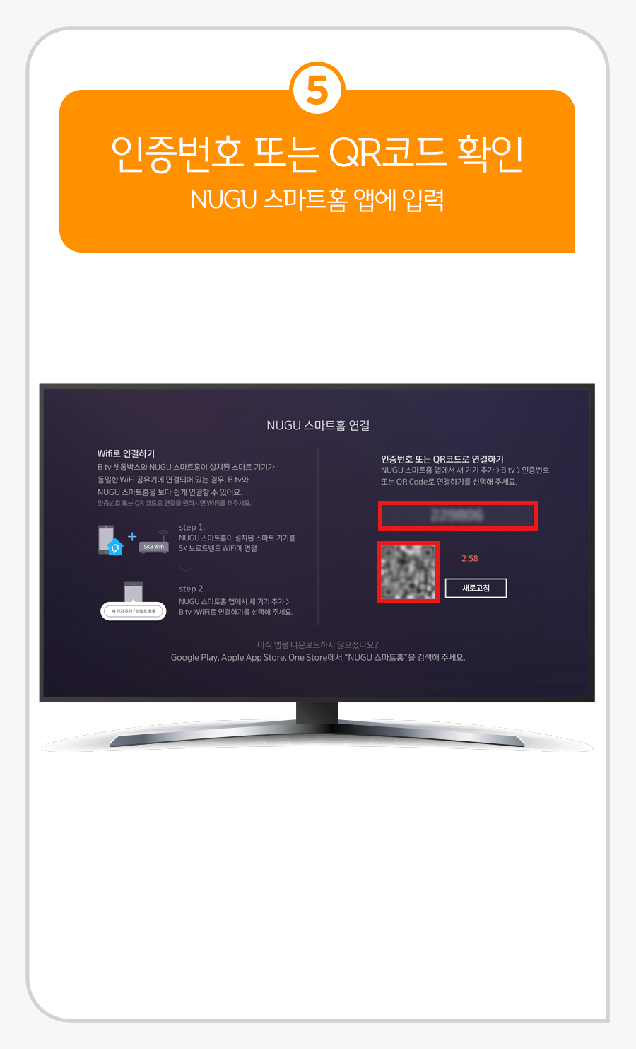 ⑤ 인증번호 또는 QR코드 확인 (NUGU 스마트홈 앱에 입력)