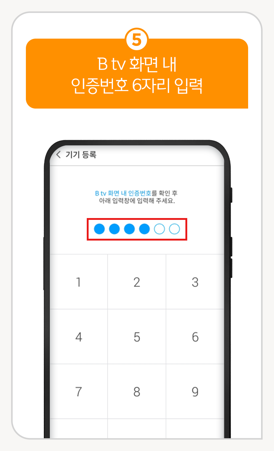 ⑤ B tv 화면 내 인증번호 6자리 입력