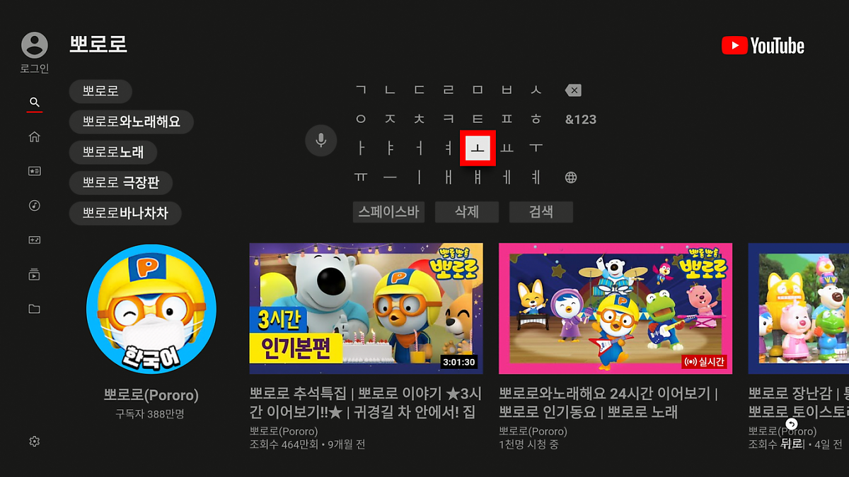 2. 리모컨의 방향키를 이용하여 검색으로 이동 시, 검색 화면과 키패트 입력창이 나타납니다.