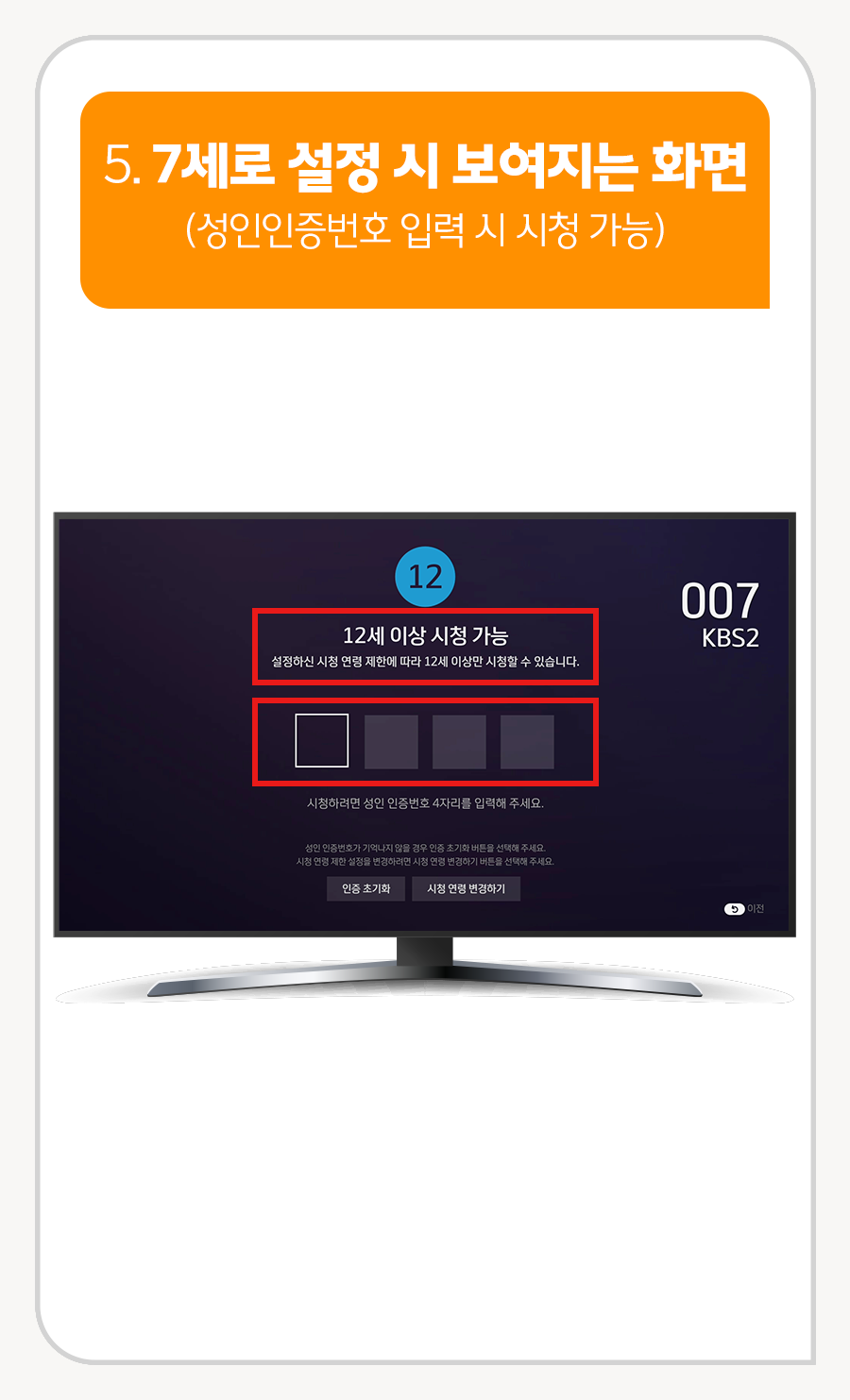 설정된 시청 등급 이상의 방송 프로그램 및 콘텐츠를 성인 인증번호를 입력해야 시청할 수 있도록 설정
